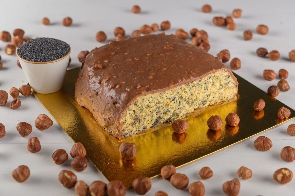 мука пшеничная, масло сливочное, сгущеное молоко, яйца, сахар, мак, сливки, шоколад, грецкий орех