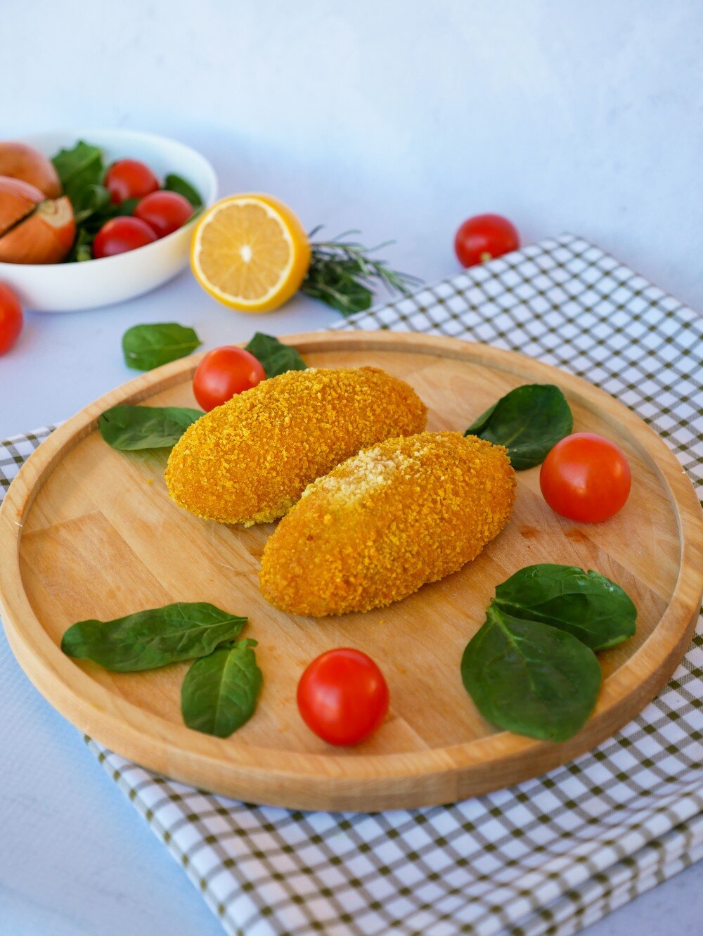 куриное филе, лук, масло сливочное, зелень, яйцо куриное, панировочные сухари